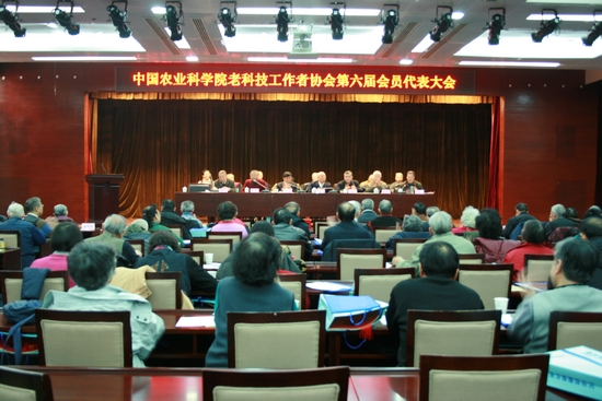 12月20日,中国农业科学院老科技工作者协会会员代表大会在北京召开?;嵋榛毓俗芙崃私昀葱峁ぷ骱途椤⒍杂判憷峡萍脊ぷ髡呓斜碚?、修改协会章程、进行理事会换届。中国老科技工作者协会会长程连昌、北京老科技工作者总会副会长张大力、农业部离退休干部局巡视员原晓东、中国老科协农业分会副会长刘新泉,中国农科院副院长王韧出席大会并讲话。院机关有关部门负责人和京区部分研究所领导,院老科协新、老理事和会员代表等80余人参加会议。