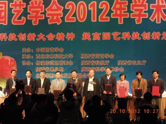 中国园艺学会2012年学术年会首届“华耐园艺科技奖”颁奖仪式(左2:王志强 研究员)