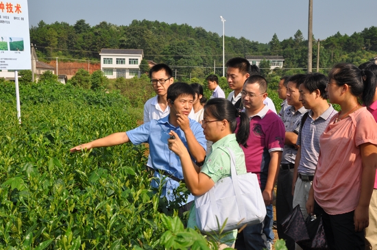 据介绍,经过一年半的实施,该项研究取得登记绿肥新品种“茶肥1号”和茶树生物农药“茶毛虫核型多角体病毒”、“茶毛核•苏”茶树害虫病毒制剂等3个,研究提出了茶园绿肥种植、土壤酸化改良、茶树害虫生物防治和碎茶堆积密度快速检测等技术,编制形成了《茶园建设管理技术》、《绿茶标准化生产》等技术操作规程,建立了基于“3S”的茶园地理信息管理系统??蒲腥嗽痹谡憬?、湖南、福建、湖北和广东等主产省建立了茶园标准化生产技术核心示范点20个,示范茶园面积达到5万余亩,各项技术推广应用面积超过20万亩;发表论文20余篇,申请专利5项,获得发明专利1项;组织召开了茶树有害生物绿色防控技术和茶园绿肥使用技术现场会,举办了30余次技术培训班,培训人员近3000人次,集成和示范推广的多项技术对茶产业的支撑作用已逐渐显示出来。