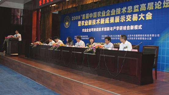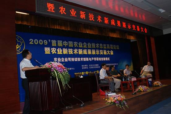 中国农业科学院主办,中国农业科学院技术转移中心承办的“2009'首届中国农业企业技术总监高层论坛暨农业新技术新成果展示交易大会” 于2009年7月18日-19日在我院隆重举行。本次大会得到农业部、科技部、中国农业科学院等领导高度重视,中国农业科学院雷茂良副院长出席了开幕式并致辞。农业部科技司白金明司长就我国农业新形势下企业技术发展机遇与战略转变做了详细阐述,财政部农业产业化办公室栾海波处长介绍了国家农业产业化与项目申报新政策,北京技术市场管理办公室刘军主任就北京农业技术辐射现状做了详细报告。