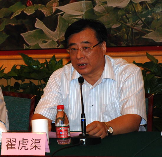 中国农业科学院翟虎渠院长在讲话中感谢各位领导和专家在百忙之中参加中国农业科学院三系抗虫棉成果展示会。翟院长指出,三系抗虫棉是我院具有自主知识产权的重大科技成果,是棉花育种的重大突破,可以与杂交水稻相媲美。三系抗虫棉的育成和推广应用必将为我国的棉花生产起到非常重大的推动作用。翟院长希望,各育种单位很好地利用建立三系抗虫棉育种网络这个契机,加强与中国农业科学院的合作,尽快把三系抗虫棉推广到全国各地,有机会也推向世界。