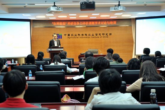 培训会特邀南京农业大学信息科技学院院长黄水清教授、中国科学院文献情报中心董瑜副研究员、中国科学技术信息研究所陈峰研究员分别就学科评价的技术问题、学科领域发展态势分析的内容与方法、如何从竞争情报角度做好科研评价等方面作了专题报告。