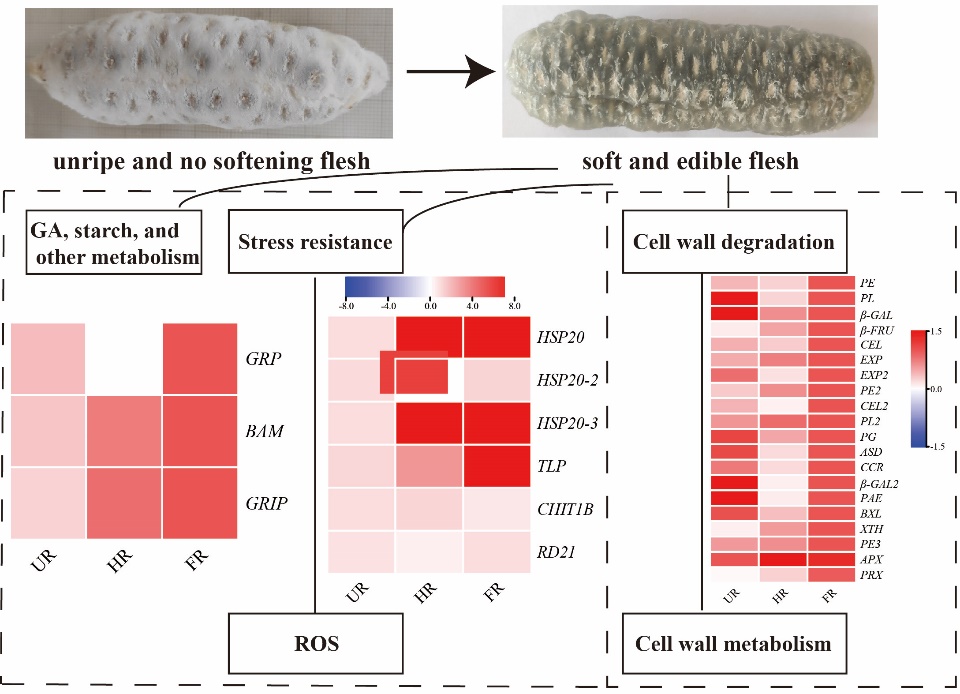 据栾明宝研究员介绍,三叶木通果肉软化是影响果实采后品质的关键因素。过度软化极易造成果实腐烂,降低其适销性和抗病性,缩短果实的贮藏期和货架期,从而造成重大经济损失。