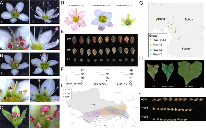 研究团队通过对喜马拉雅山区的野生甜荞、野生苦荞及西藏野生金荞种质资源的系统调查、形态比较和基因组分析,明确了金荞与苦荞的亲缘关系最近,甜荞则作为一个姊妹支平行进化的分化关系,而这是由花期和育性等性状的差异导致。进一步研究发现,野生甜荞与金荞的表型相似是由于高海拔环境的趋同适应,野生苦荞与金荞的相似则源于历史上的基因渗入。该研究阐明了作物与其野生近缘种的遗传关系,为丰富作物种质资源学基础理论提供了新的见解。