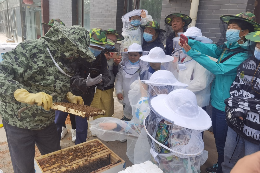 10余个甜蜜家庭在了解了世界蜜蜂日、蜜月的由来以及蜜蜂对人类及自然生态的重要性后,开启了共同寻“蜜”的沉浸式体验。