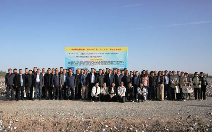 2025年10月9日,中国农业科学院棉花研究所联合新疆农业科学院、甘肃省农业科学院在甘肃省敦煌市组织召开早熟抗病棉花新种质创制与中棉113“一厂一品”关键技术集成项目现场观摩会,集中展示了项目参与单位在早熟抗病棉花新种质创制方面取得的关键进展,为“一厂一品”模式的推行提供了重要的品种与技术支撑。