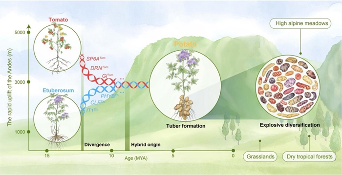 图为古杂交事件驱动马铃薯的薯块形成与辐射演化