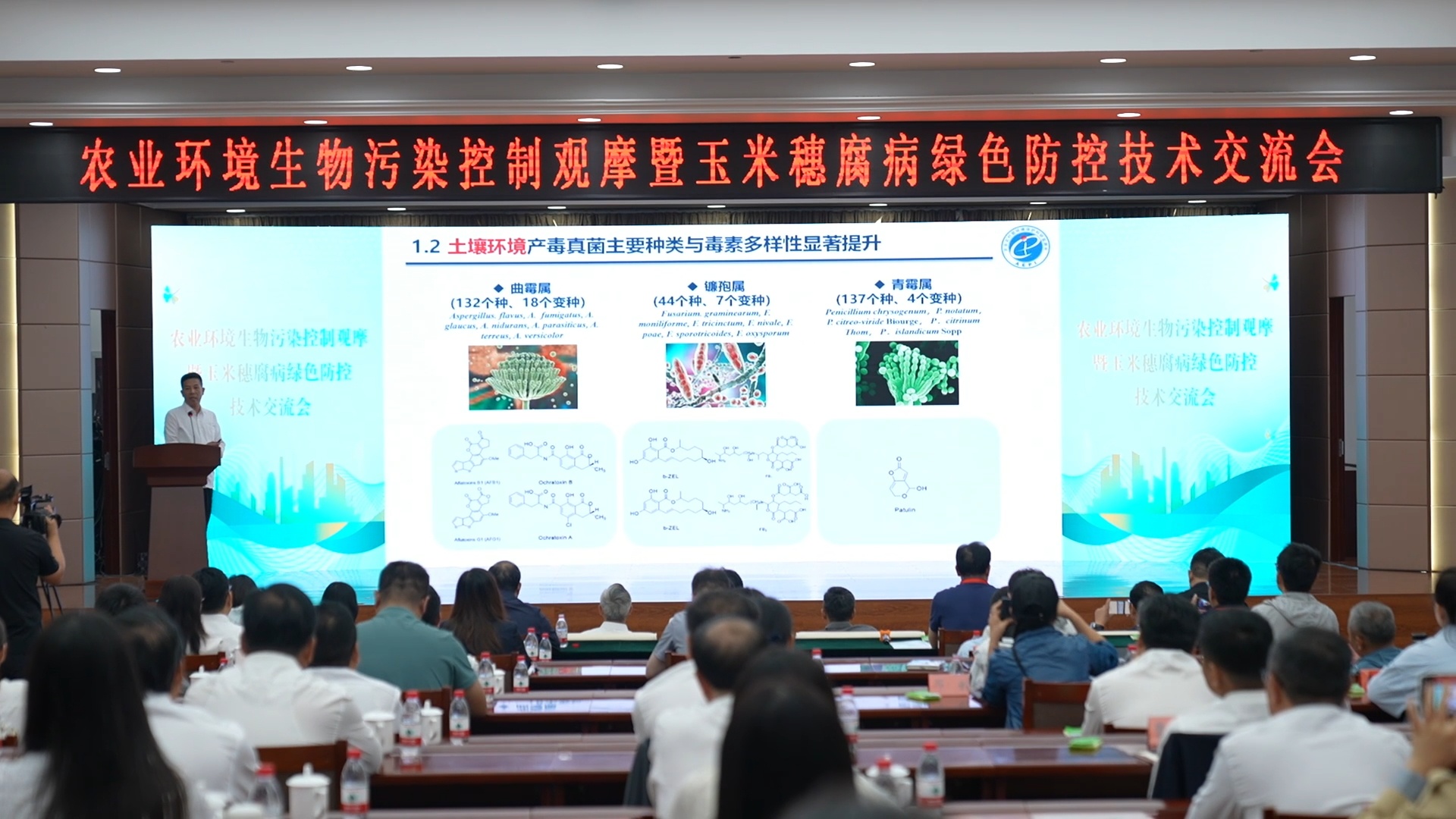近日(9月21日),农业农村部环境?;た蒲屑嗖馑?/a>在河北邯郸市鸡泽县主办玉米穗腐病及真菌毒素污染防控技术交流暨现场观摩会。在鸡泽县千亩玉米绿色防控示范田里,与会代表现场观摩了玉米穗腐病及真菌毒素污染绿色防控技术试验示范区,全面了解了以土壤健康调控为核心的一体化绿色防控技术体系。该体系整合了“土壤健康修复-病原源头阻控-生态协同调控”三大技术模块,形成了“土壤菌群重构—有害真菌抑制—玉米品质提升”的全链条防控路径。